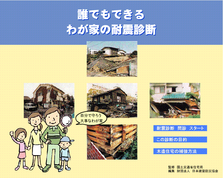 地盤、基礎、建物の形状・壁の配置、屋根、老朽度などを調査、診断し、そのデータを基に強度計算をします。